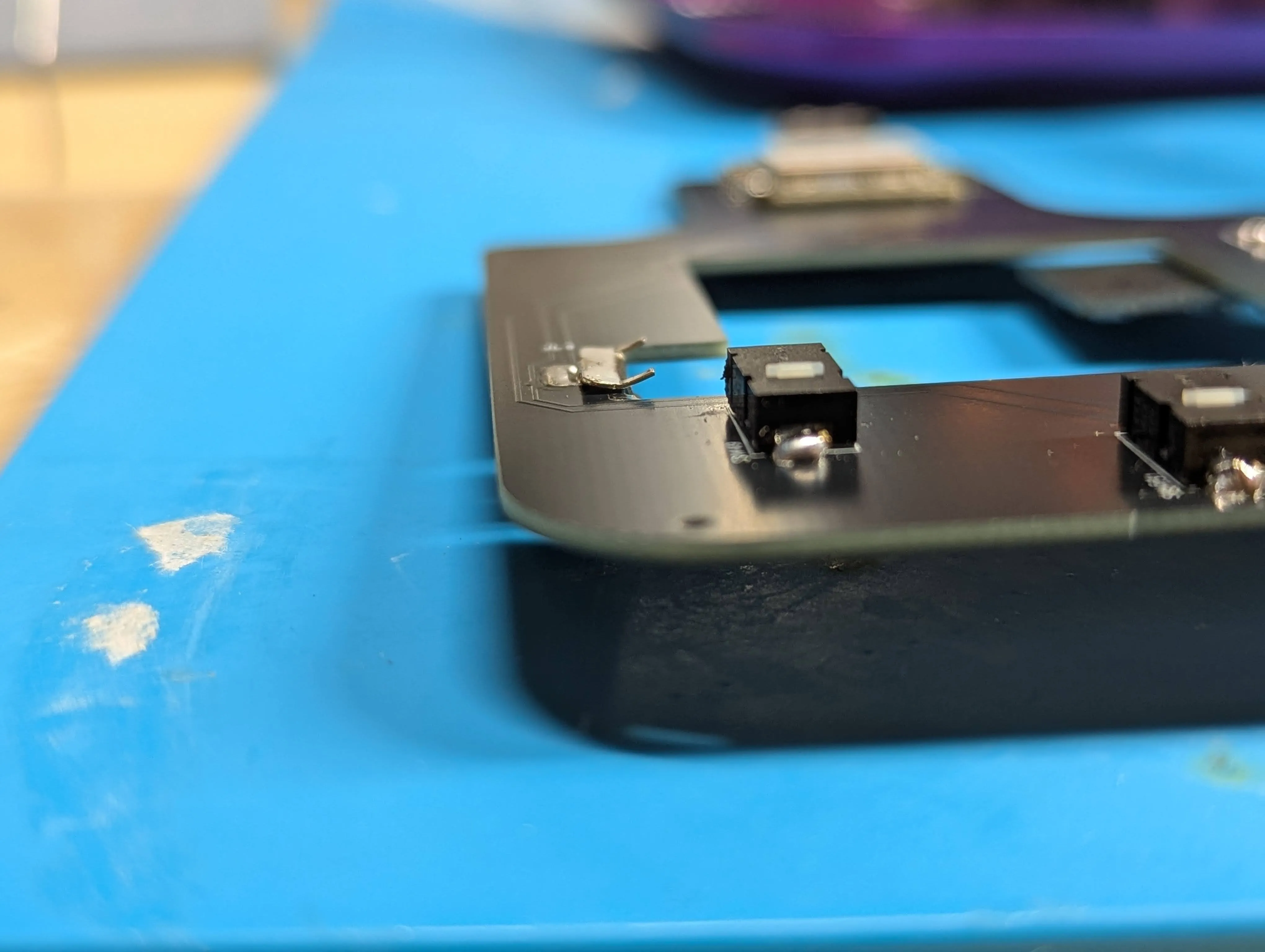 Section titled “スライドスイッチのハンダ付け”取り付ける面をよく確認してからハンダ付けする。